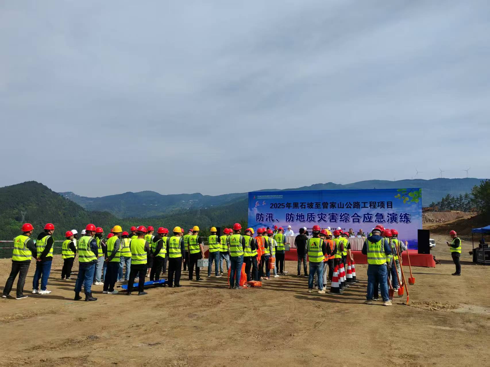 黑石坡至曾家山公路工程項(xiàng)目開展防汛、防地質(zhì)災(zāi)害綜合應(yīng)急演練,多維提升項(xiàng)目部應(yīng)對(duì)突發(fā)事件的協(xié)調(diào)指揮、現(xiàn)場(chǎng)處置等能力。