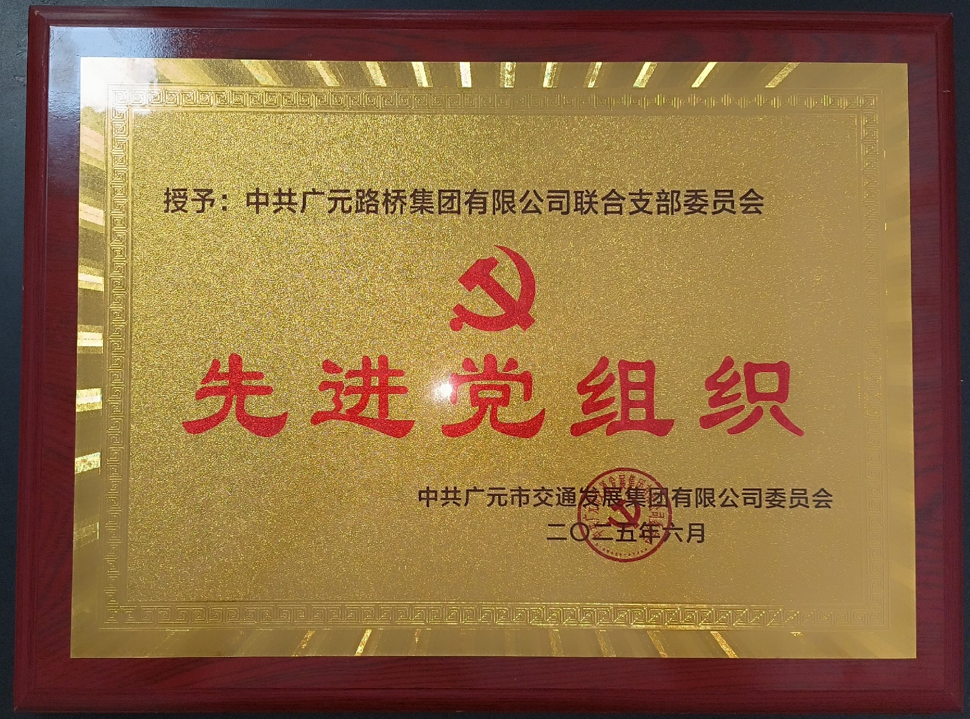 6月27日,市交發集團黨委召開慶祝中國共產黨成立104周年表彰大會,路橋聯合黨支部被評為“四星級黨支部”,并獲“先進黨組織”榮譽稱號。
